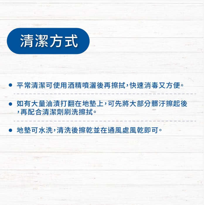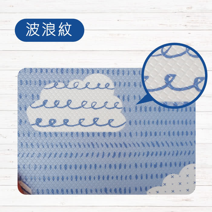 底部特別加上防滑處理,讓地墊不容易移動,避免滑倒的發生,同時止滑面也可以當成素面地墊使用,圖案面與素面一次同時擁有!