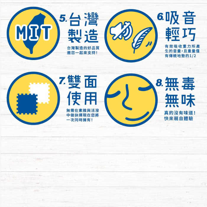 高密度彈性設計,能有效吸收重力所產生的音量,且重量僅有傳統地墊的1/2